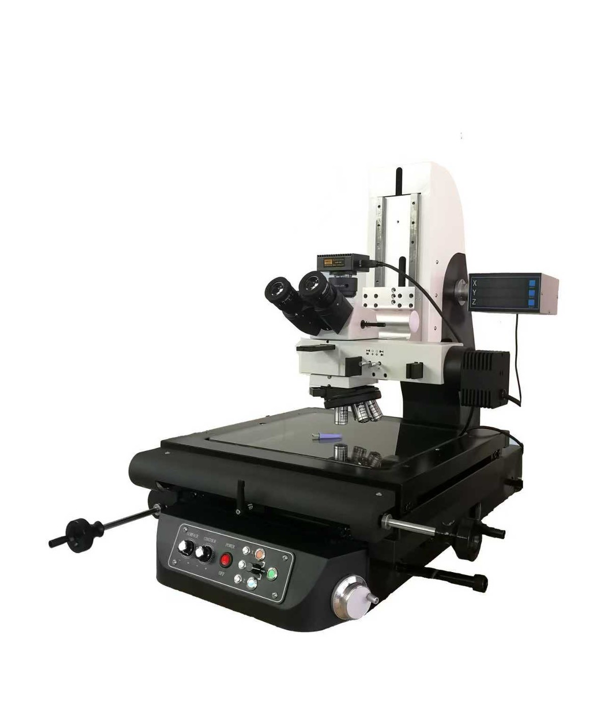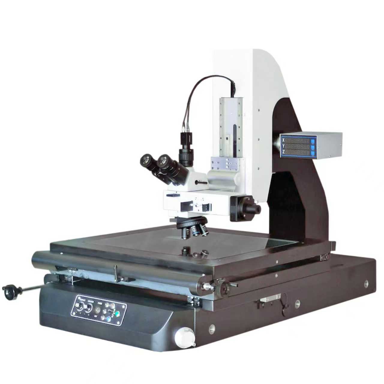 本款產品採用花崗岩基座設計,剛性佳永不生鏽,可選擇多種不同量測行程;產品結合了高倍率觀察金相顯微鏡的觀察能力和影像量測儀的尺寸量測功能,是同時具有高精度量測和高倍率觀察的多功能量測儀器。該量測儀器搭配三目鏡筒、數位相機、光源系統、精密升降機構及對焦裝置,具備多種數據量測、顯微成像、顯示輸入及輸出...等功能。